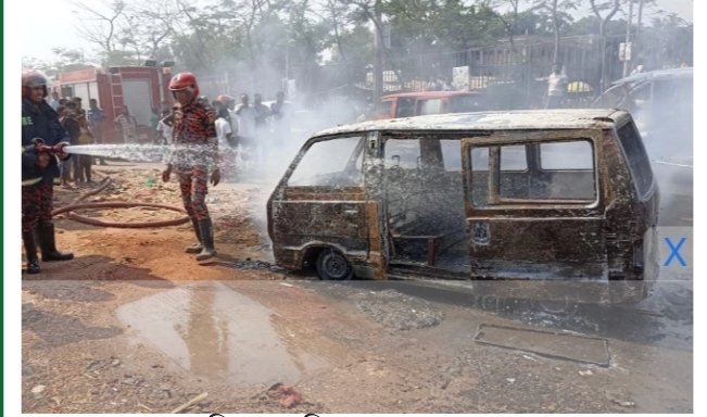 কুমিল্লার ঢাকা-চট্টগ্রাম মহাসড়কের বুড়িচং উপজেলার নিমসার বাজারে একটি চলন্ত মাইক্রোবাসে আগুনের ঘটনা ঘটেছে। এ সময় চালকের দক্ষতার কারণে বড় ধরনের দুর্ঘটনার হাত থেকে রক্ষা পায় মাইক্রোবাসে থাকা পাঁচ যাত্রী।রোববার (১৩ এপ্রিল) দুপুর দেড়টায় কুমিল্লা থেকে ঢাকামুখী লেনের নিমসার বাজার এলাকায় এ ঘটনা ঘটে।প্রত্যক্ষদর্শীরা জানান, দুপুর দেড়টায় মহাসড়কের মধ্যেই চলন্ত অবস্থায় মাইক্রোবাসটিতে আগুন লাগে।এ সময় চালক দ্রুত রাস্তার পাশে গাড়িটি থামালে যাত্রীরা নেমে যান। মুহূর্তের মধ্যেই গাড়িটি পুড়ে ছাই হয়ে যায়।গাড়িচালক সজিব মিয়া বলেন, ক্যান্টনমেন্টের সৈয়দপুর এলাকার একটি সিএনজি পাম্প থেকে গ্যাস নিয়ে পাঁচ যাত্রীসহ চান্দিনার উদ্দেশ্যে যাচ্ছিলাম। নিমসার বাজার এলাকায় এলে ইঞ্জিনের গিয়ার বক্সের মধ্যে প্রথমে আগুন দেখতে পাই। দ্রুত আগুন ছড়িয়ে পড়তে থাকে। তাৎক্ষণিকভাবে রাস্তার পাশে গাড়িটি থামিয়ে যাত্রীদের দ্রুত নামতে বলি।তিনি আরও বলেন, যাত্রীরা নেমে যাওয়ার সঙ্গে সঙ্গে আগুন পুরো গাড়িতে ছড়িয়ে পড়ে। মুহূর্তের মধ্যে চোখের সামনে গাড়িটি পুড়ে ছাই হয়ে যায়। আগুনে আমার শরীরের কিছু অংশ পুড়ে গেছে। খবর পেয়ে চান্দিনা থেকে ফায়ার সার্ভিসের একটি দল ঘটনাস্থলে এসে আগুন নেভায়।দেবপুর পুলিশ ফাঁড়ি পরিদর্শক সাইদুল বলেন, আগুনে গাড়িটি সম্পূর্ণ পুড়ে গেছে। গাড়িটির কোনো কিছুই অবশিষ্ট নেই। গাড়ির মালিক ঘটনাস্থলে এলে তাকে গাড়িটি বুঝিয়ে দেওয়া হয়েছে।